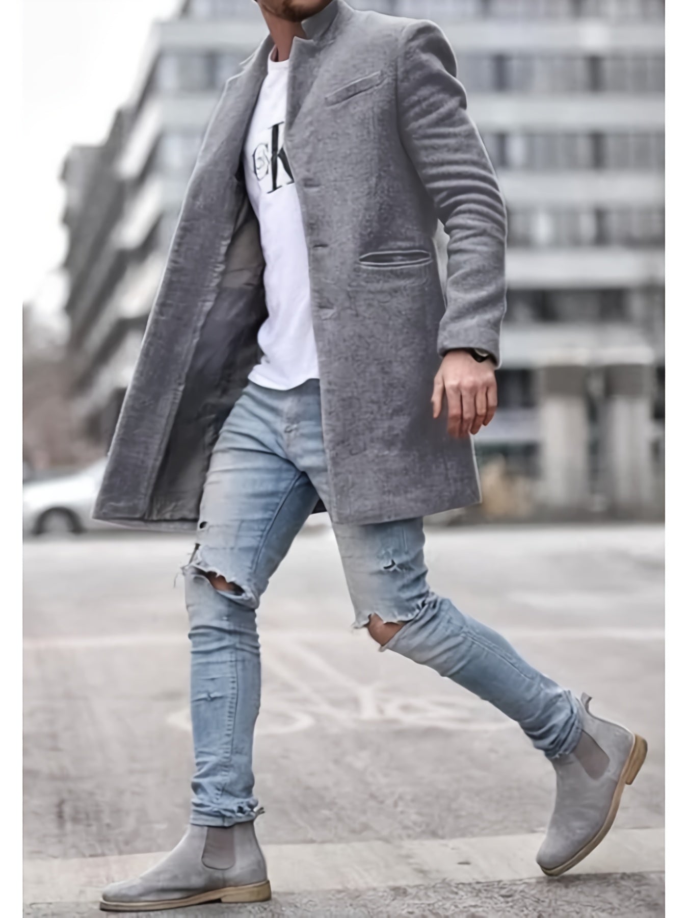 Stay warm and stylish with this Mens Winter Jacket Stand Collar Mid Length Windbreaker Coat Outerwear. Crafted from 100% Polyester with a subtle stretch, it moves with you for all-day comfort while a clean front button closure keeps the look sharp.