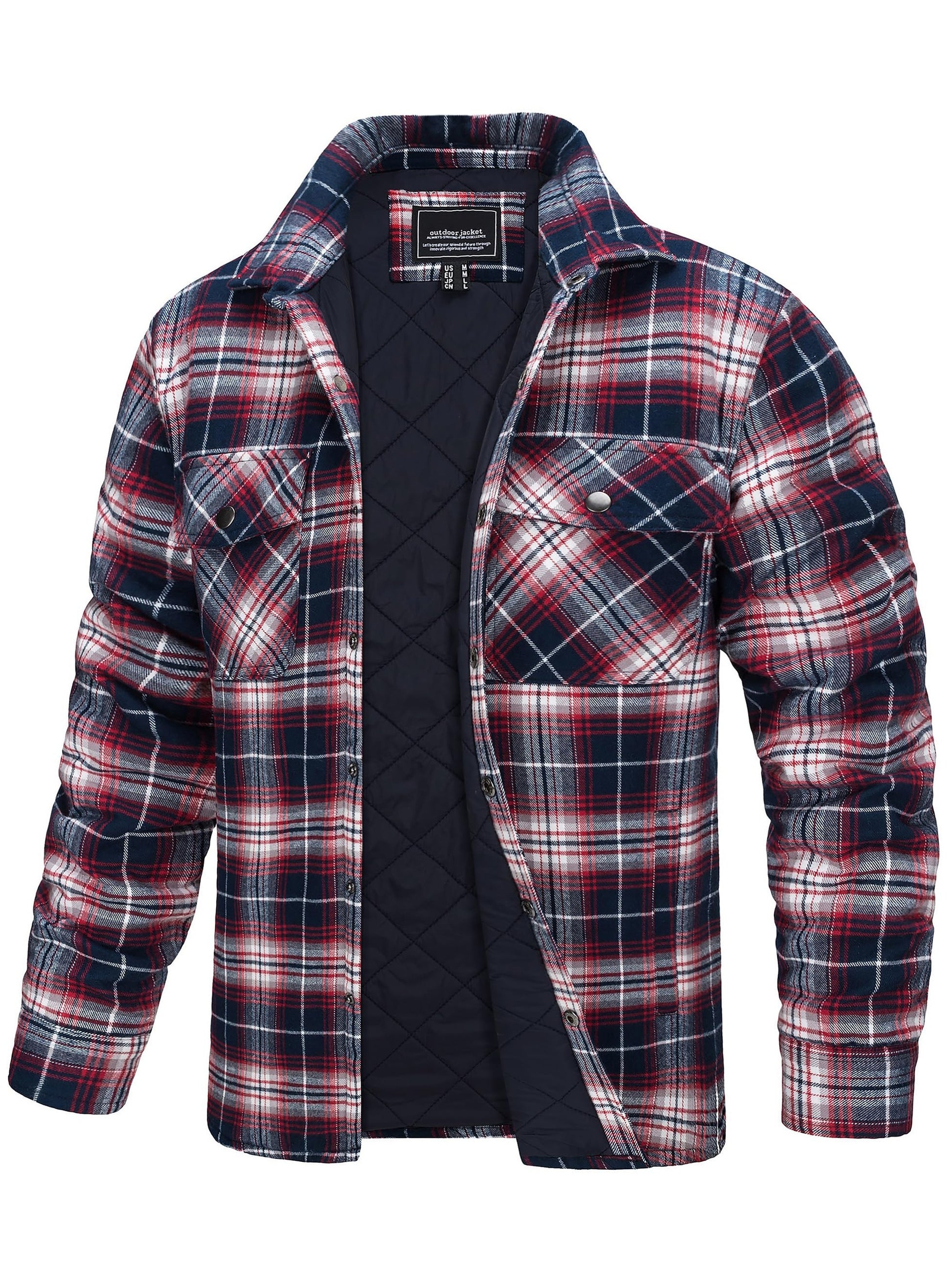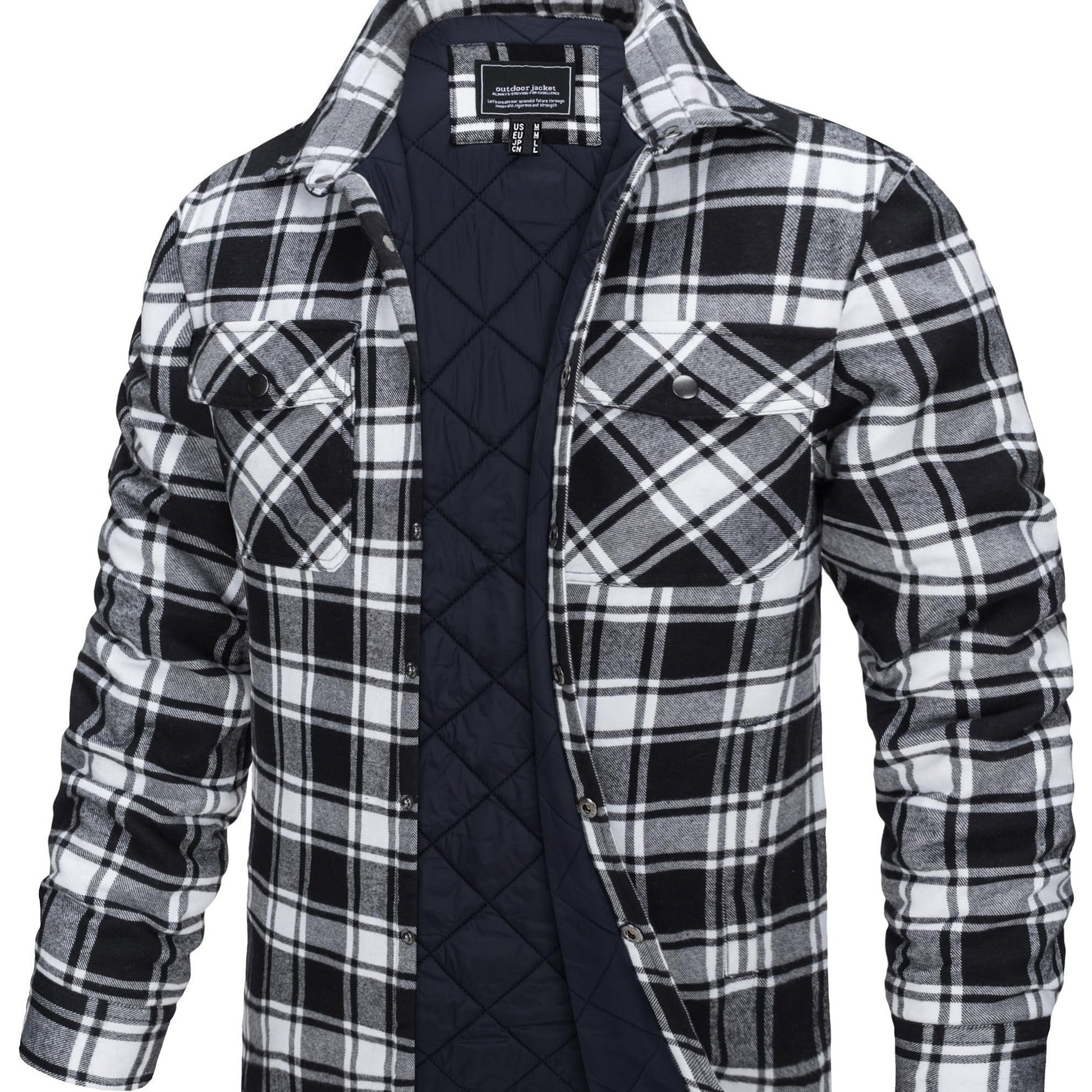 Mens Winter Shirt Jacket Flannel Thermal Windproof Insulated Zippered StoragePockets